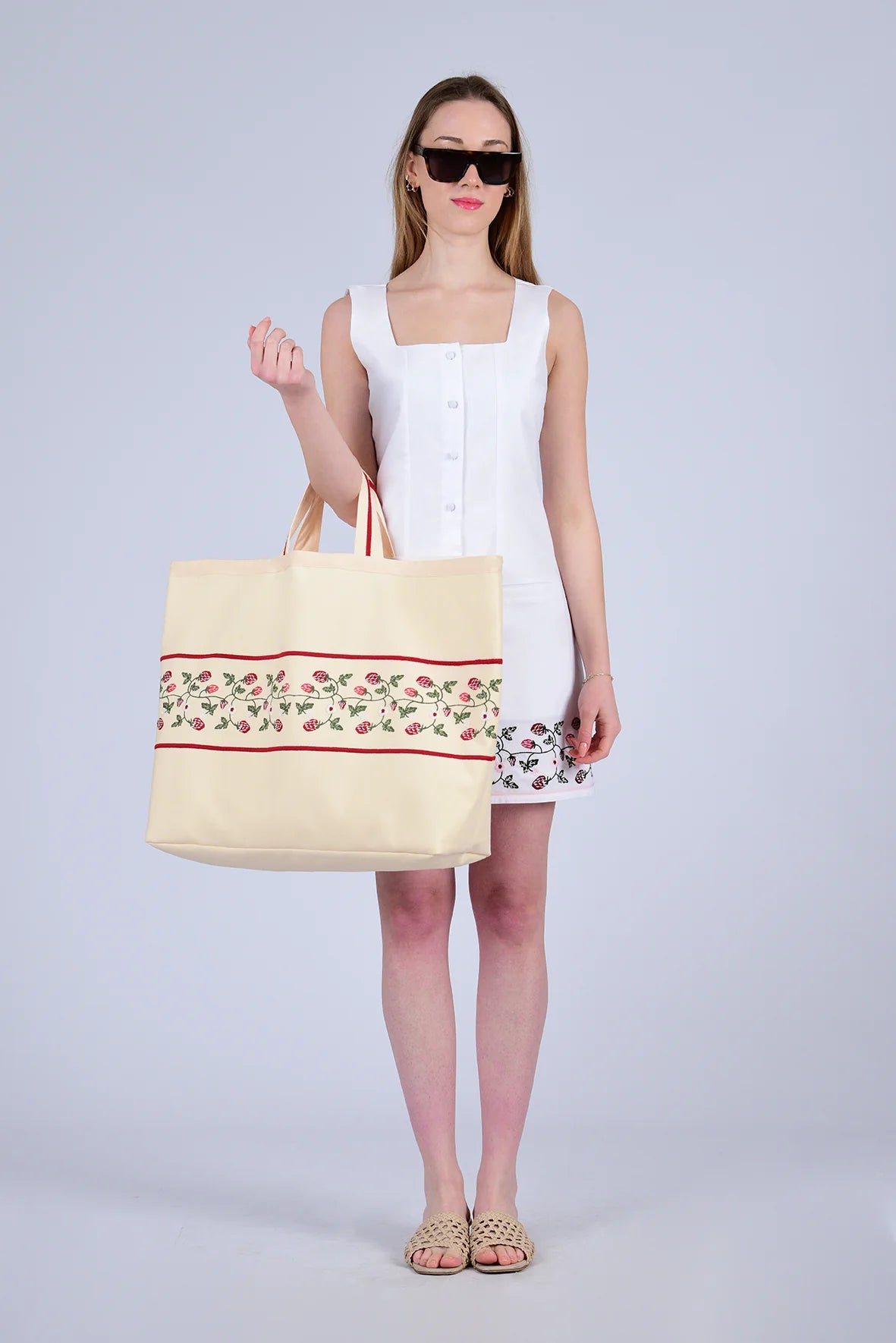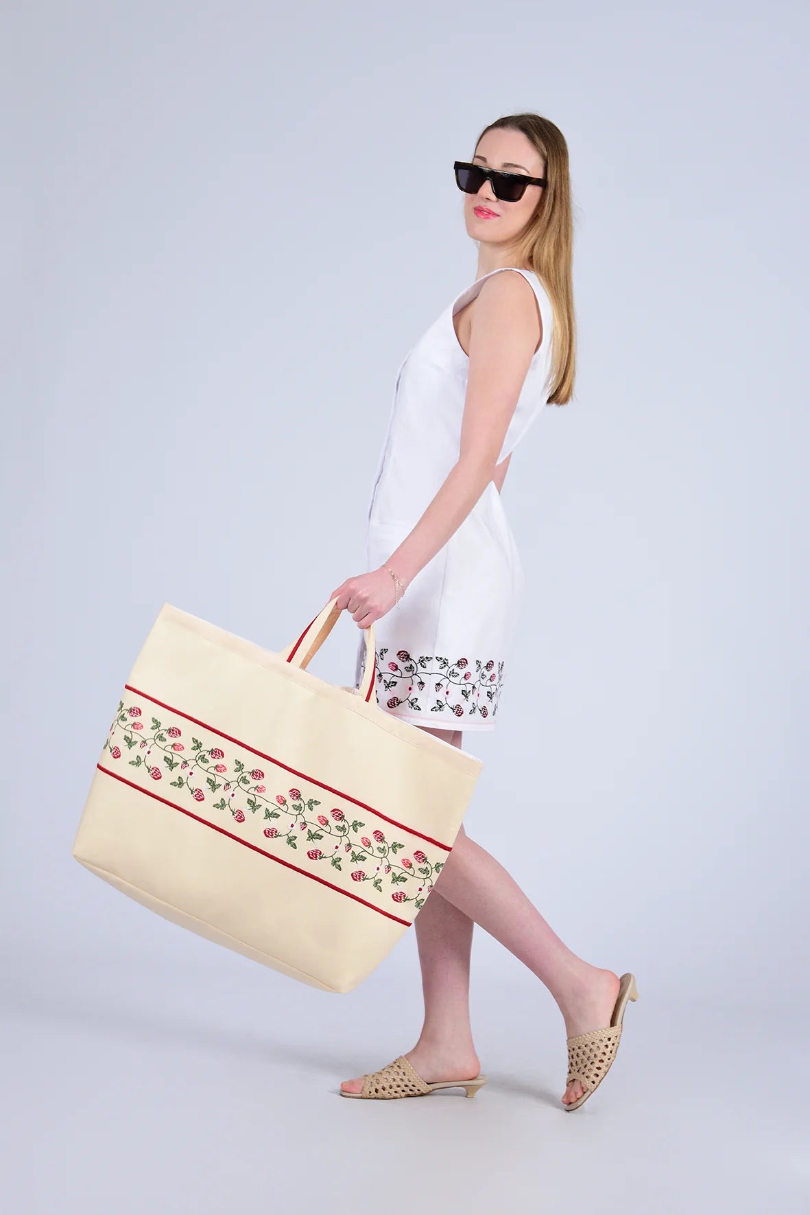 Crafted in collaboration with Monica Lavin, meet your charming new companion for market mornings and everyday errands. This tote brings a fresh-picked feel to your daily routine with delicate strawberry embroidery. Unstructured and effortlessly stylish, it’s the kind of bag you’ll reach for again and again.