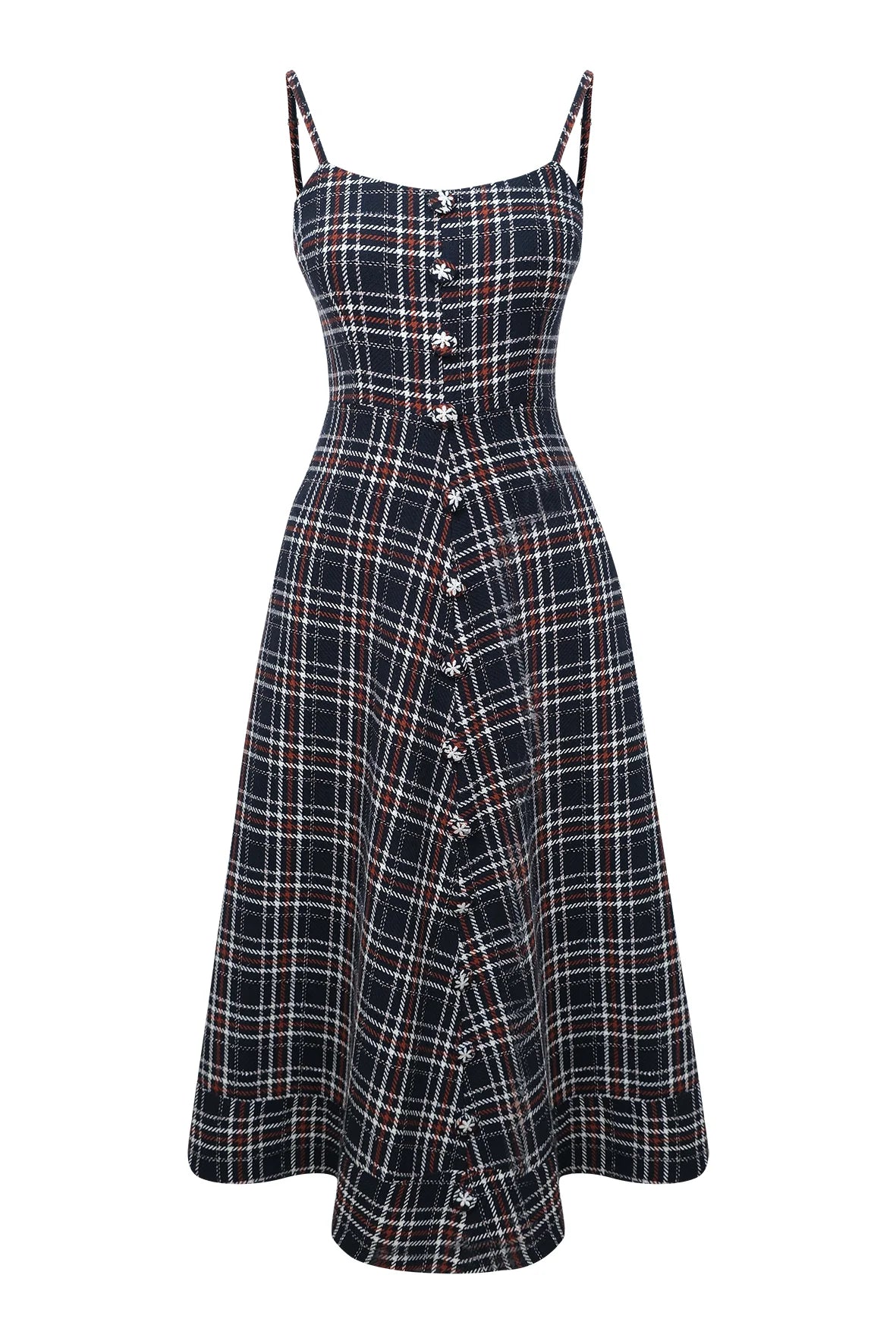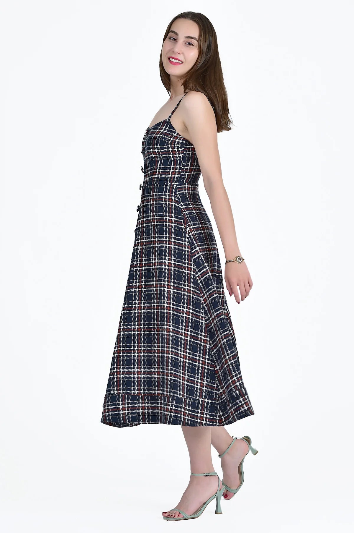This Midi Dress is a timeless blend of sophistication and ease, featuring a button-front. With adjustable spaghetti straps and a tailored fit, it is made from ethically sourced fabrics for style and sustainability. A versatile piece that combines classic charm with modern elegance.