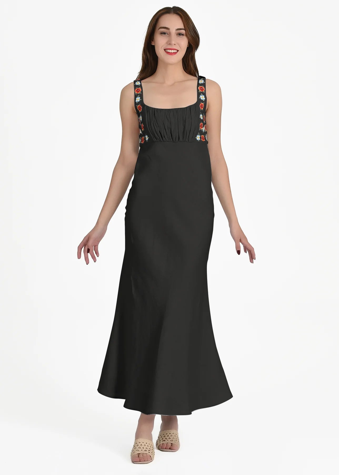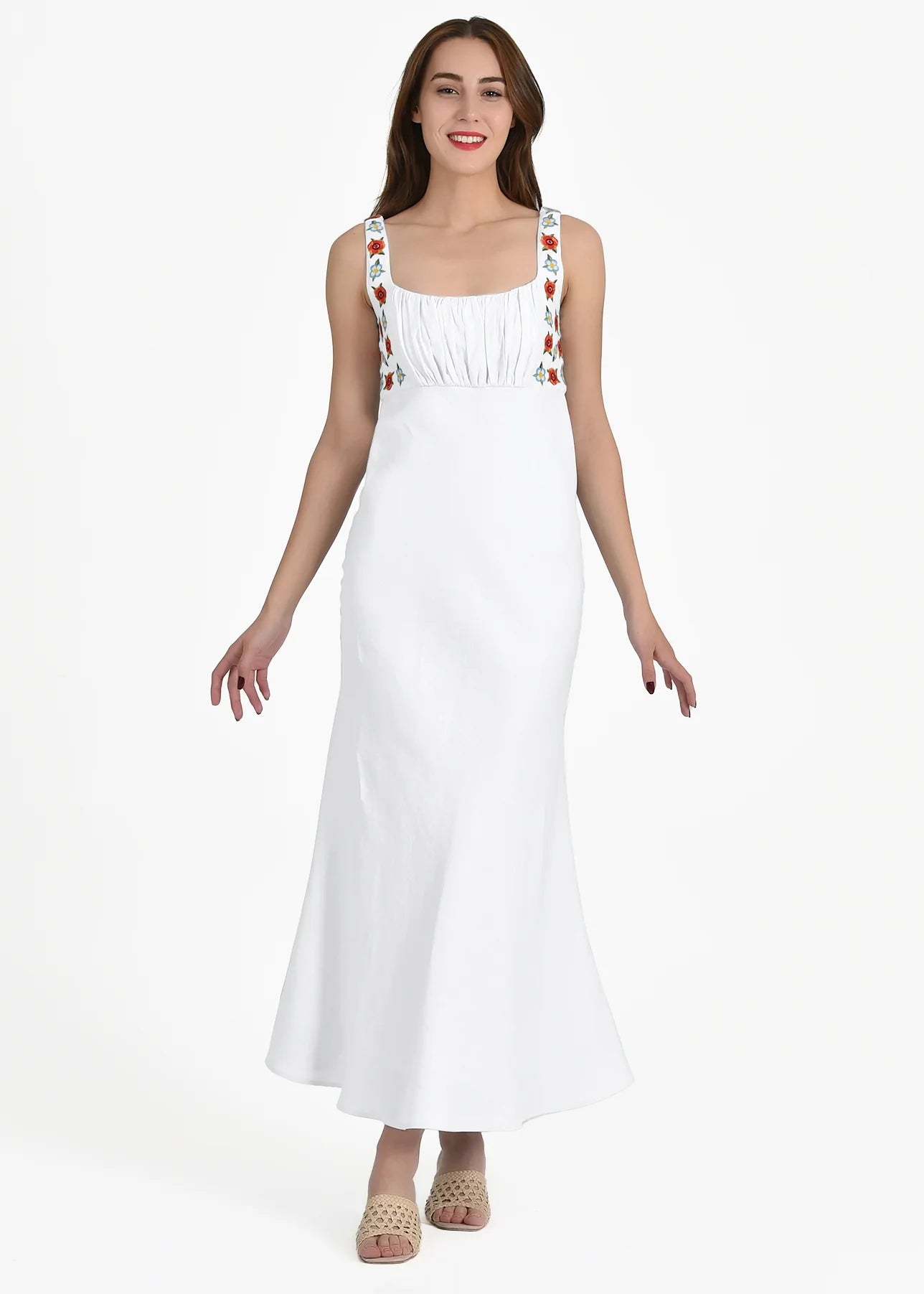 This 100% cotton midi dress is a summer dream come true. The combination of a flattering silhouette and beautiful details makes it perfect for any occasion.