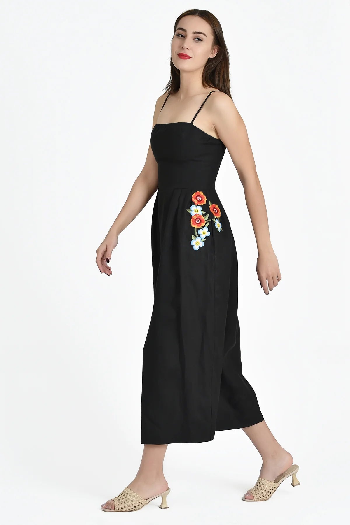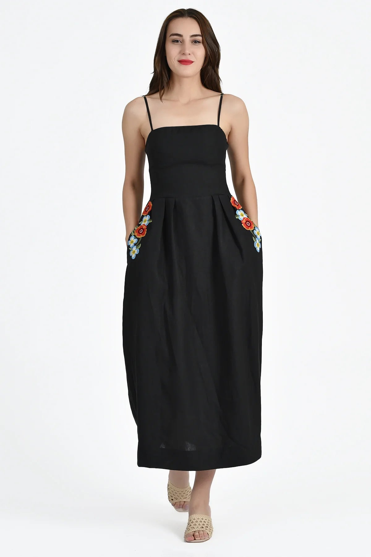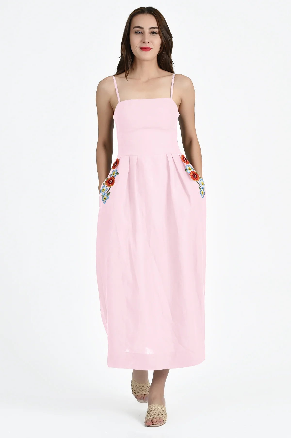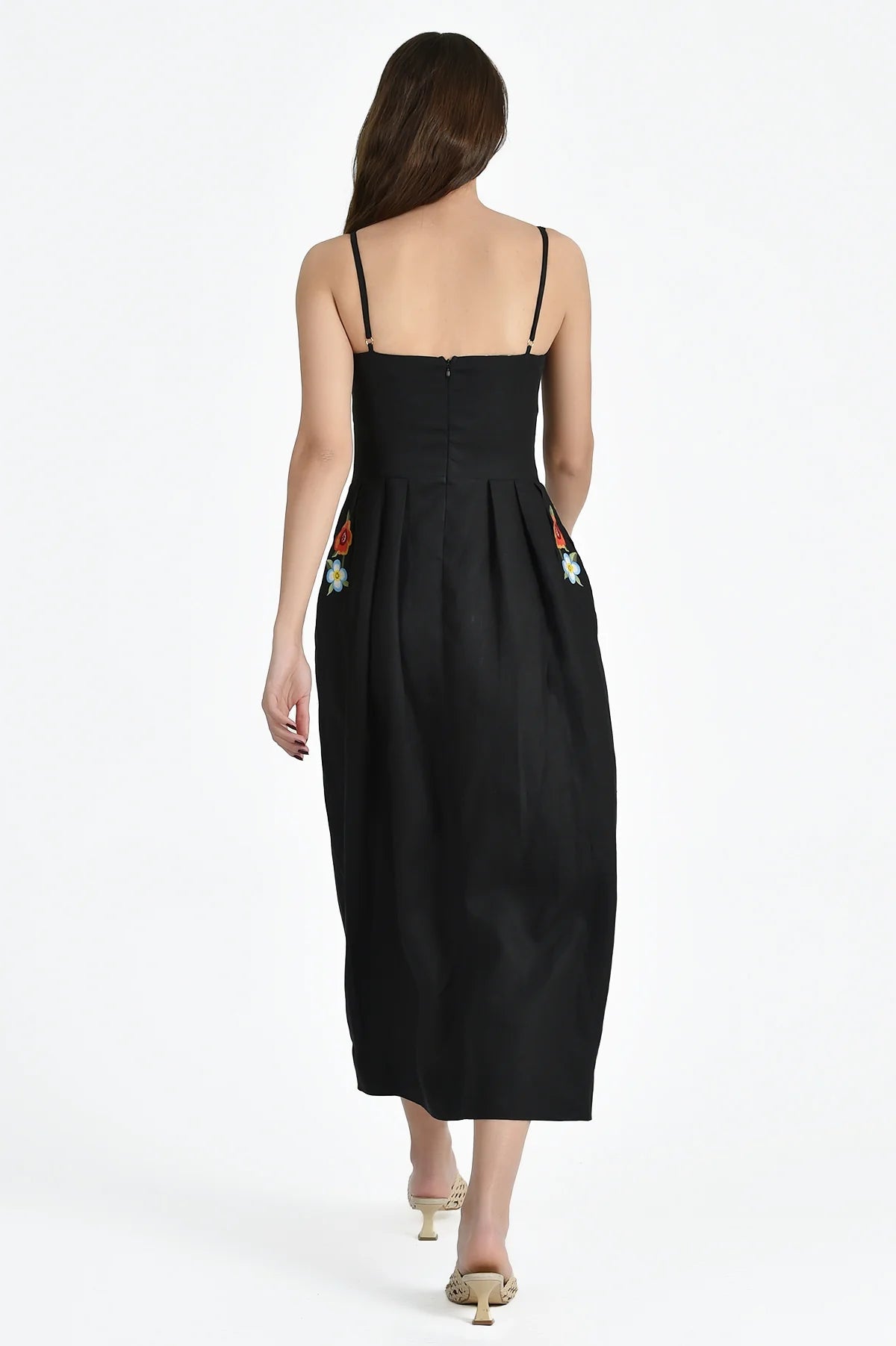 This stunning 100% cotton dress flatters any figure with its intricate embroidery of nature-inspired florals along the sides, ensuring you stand out in style.