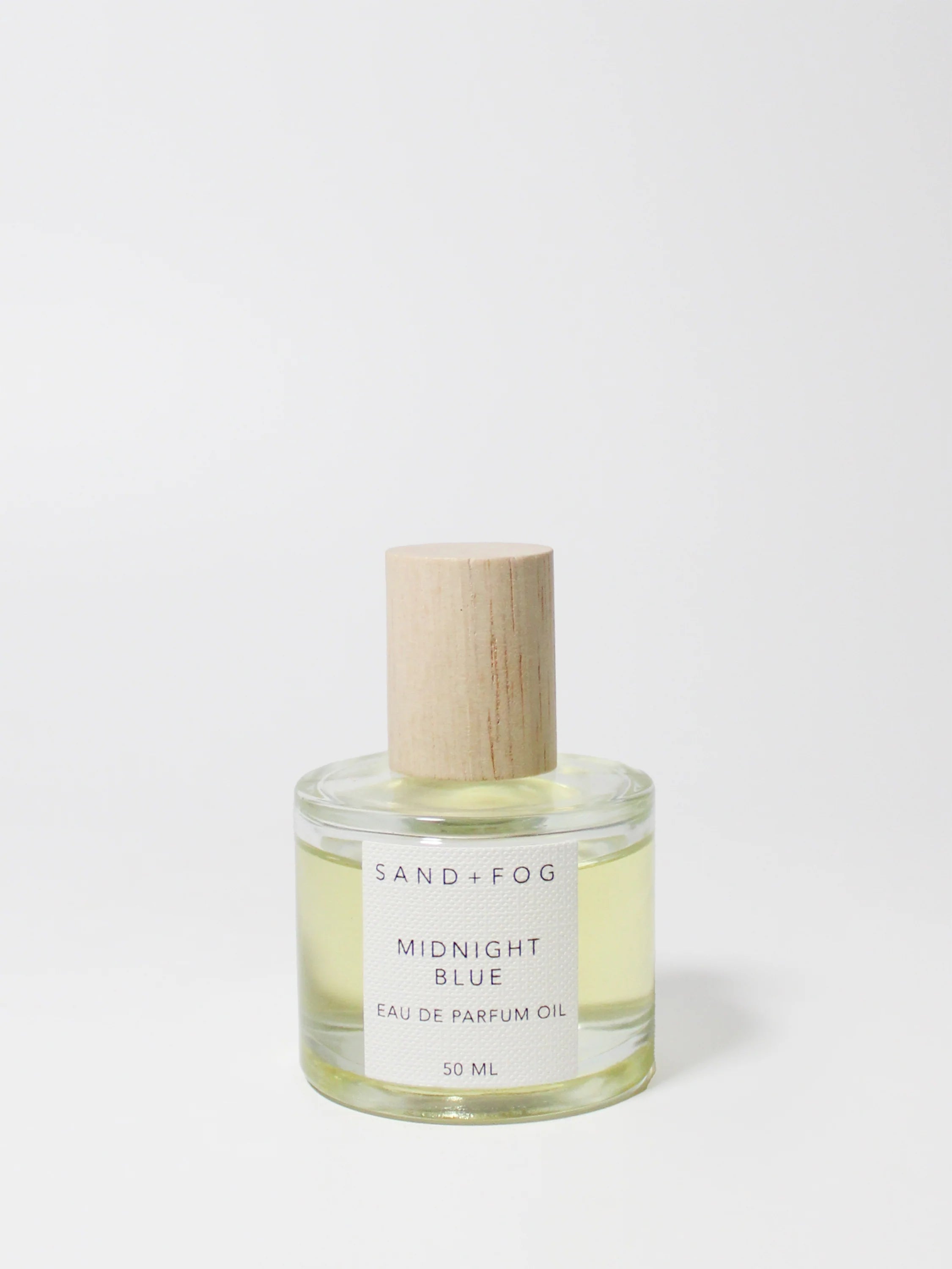 Midnight Blue is the scent of secrets kept after dark—of glittering eyes across candlelit tables and velvet laughter in the backseat of a taxi. Ripe peach and golden bergamot ignite the evening, while creamy jasmine and cedarwood drift like silk against skin. As the night deepens, melted vanilla and dark chocolate linger in the air—rich, addictive, and impossible to forget. This is midnight—dressed in blue, kissed by shadow. Elevate your everyday moments with this luxurious perfume oil, available exclusively from Sand + Fog.