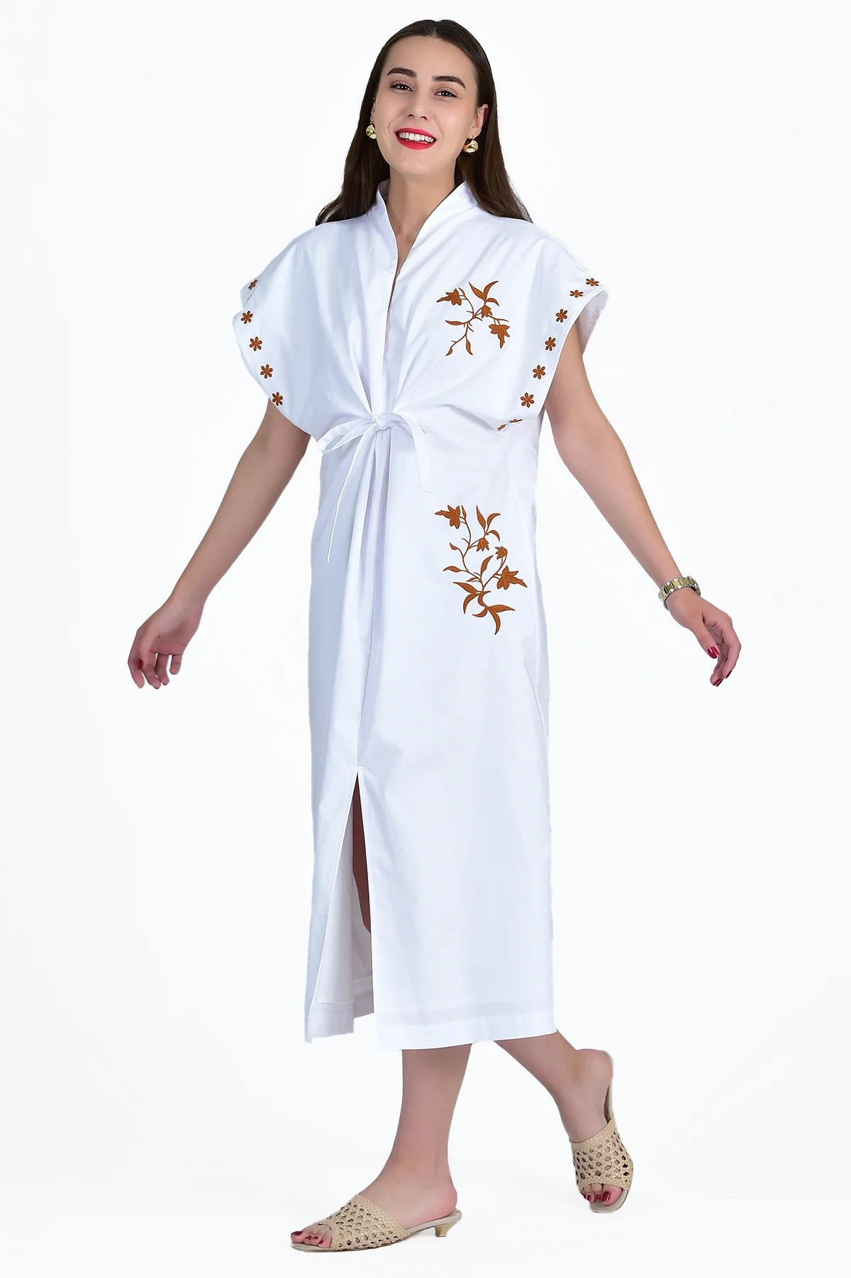 Elevate your wardrobe with this midi-length dress, designed for versatile wear. Featuring a sophisticated mandarin collar and fluttery cap sleeves, this dress flatters with its relaxed fit and optional tie belt that cinches at the waist for a customized silhouette.