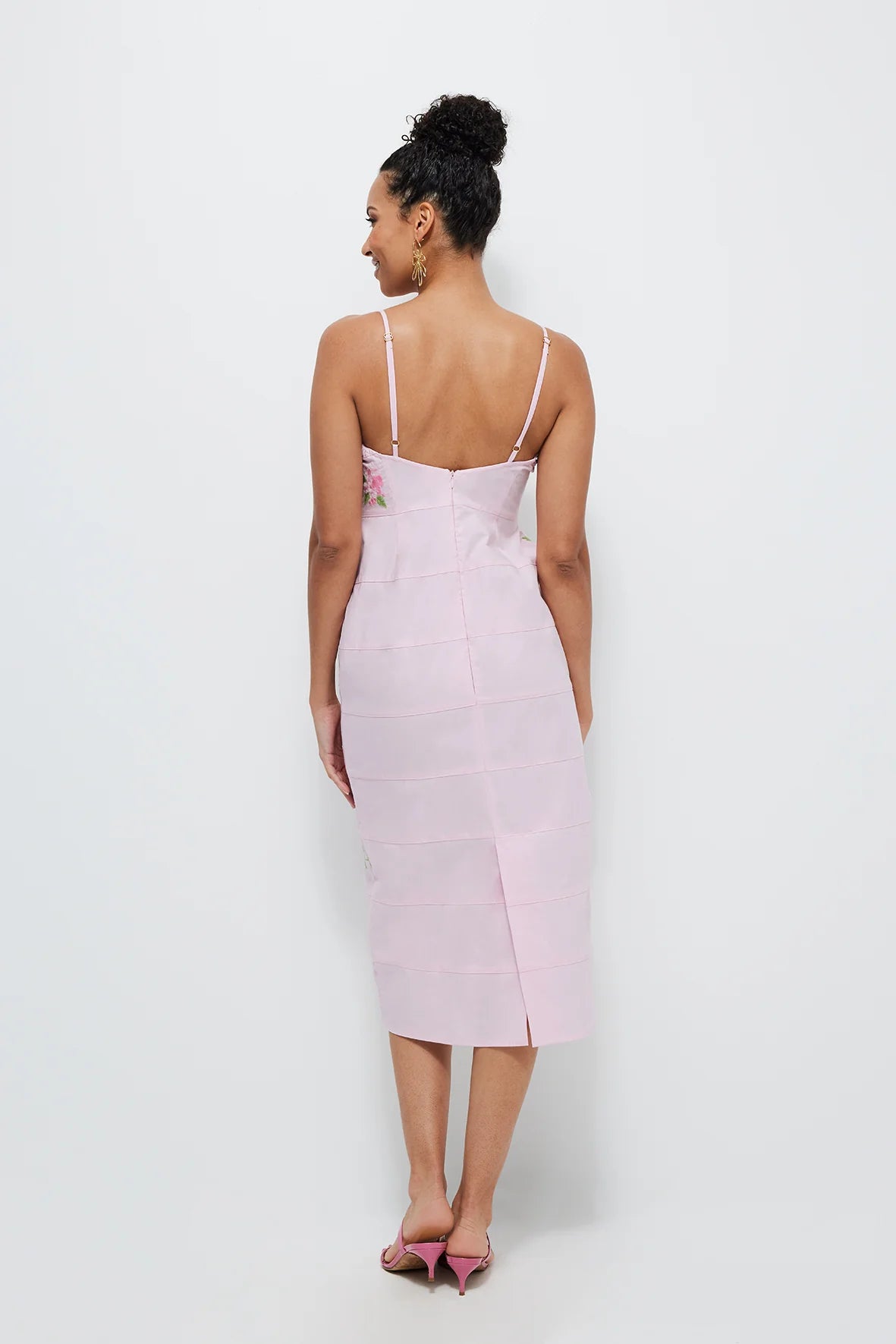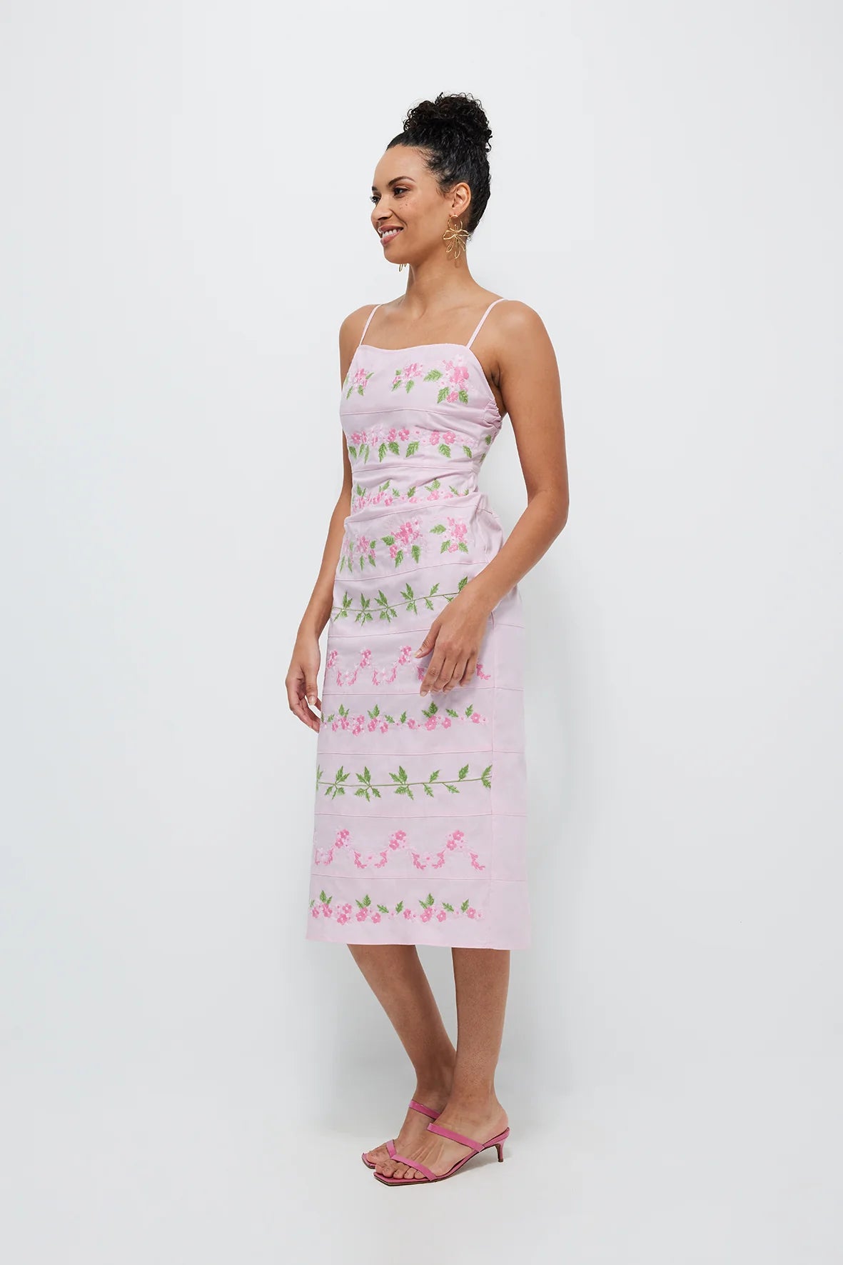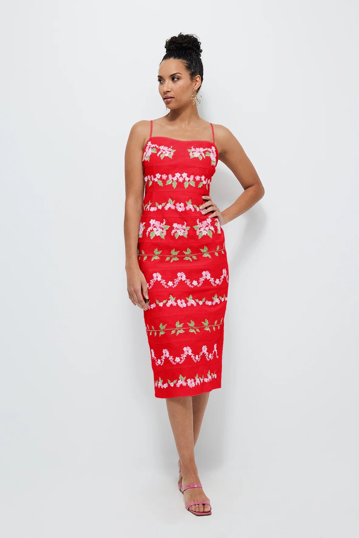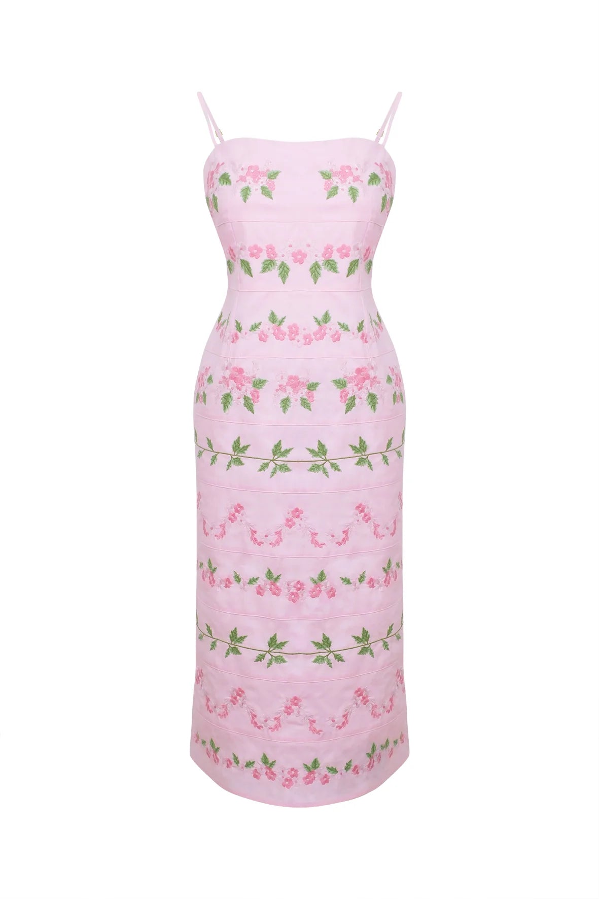 Effortlessly charming and sophisticated, this midi dress features delicate floral embroidery and a flattering silhouette, making it a standout piece for special occasions and beyond.