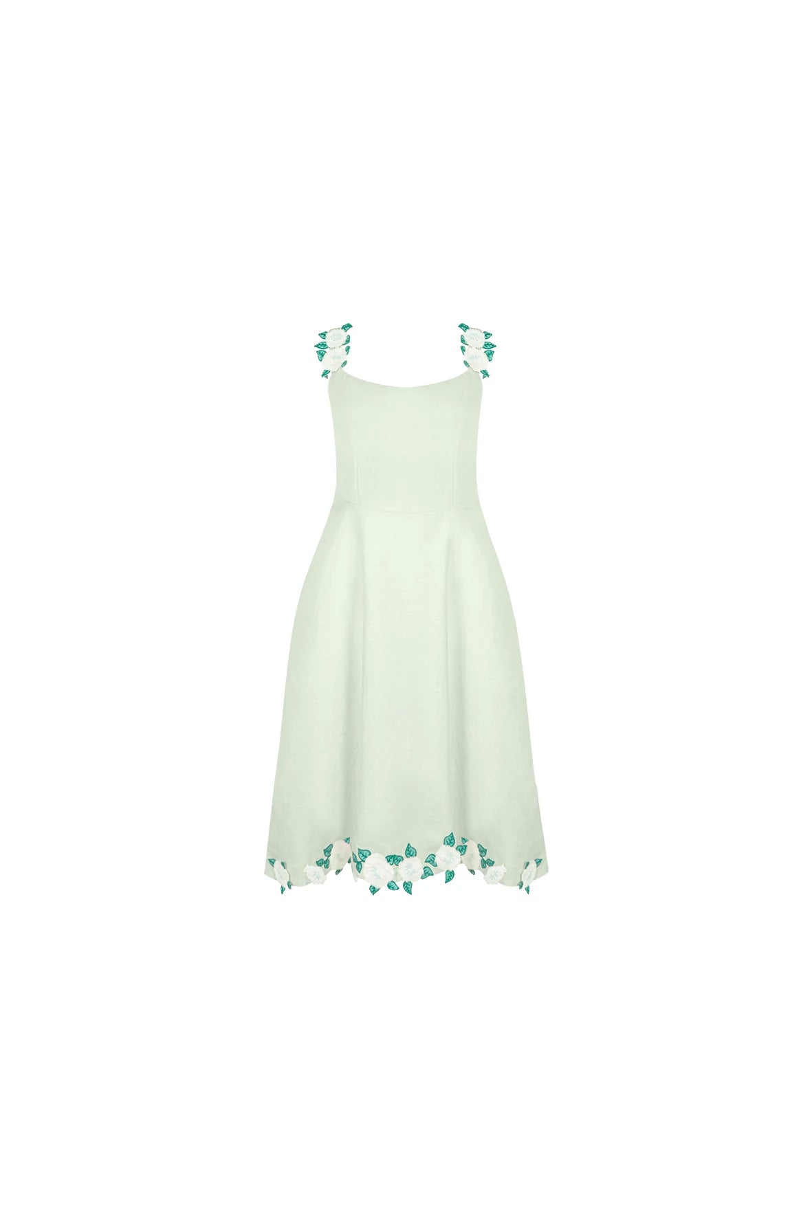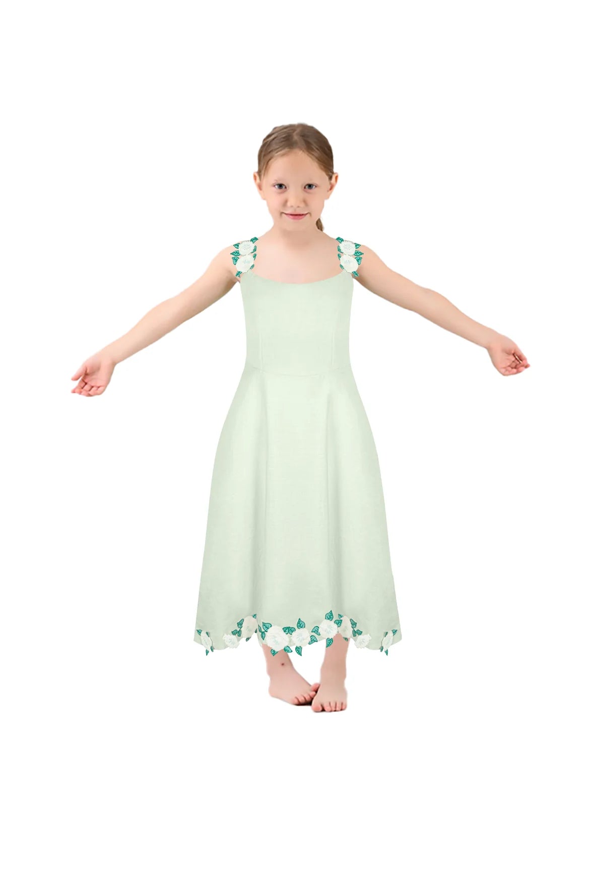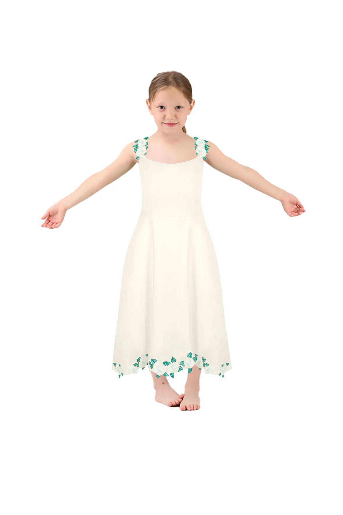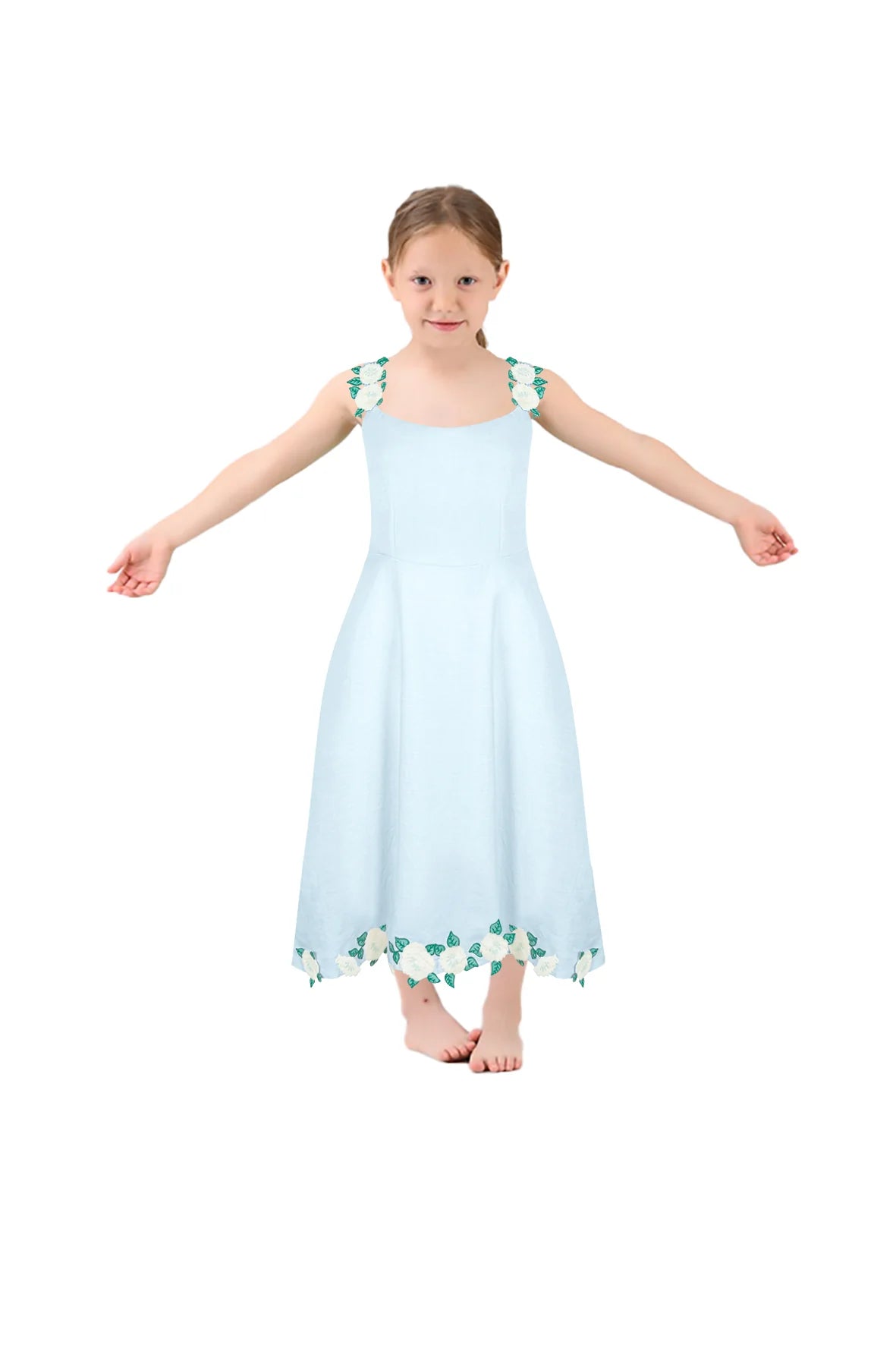 The perfect Flower Girl dress to complement your bridesmaids. With delicate floral embroidered straps and hem, she'll look absolutely charming for your special day