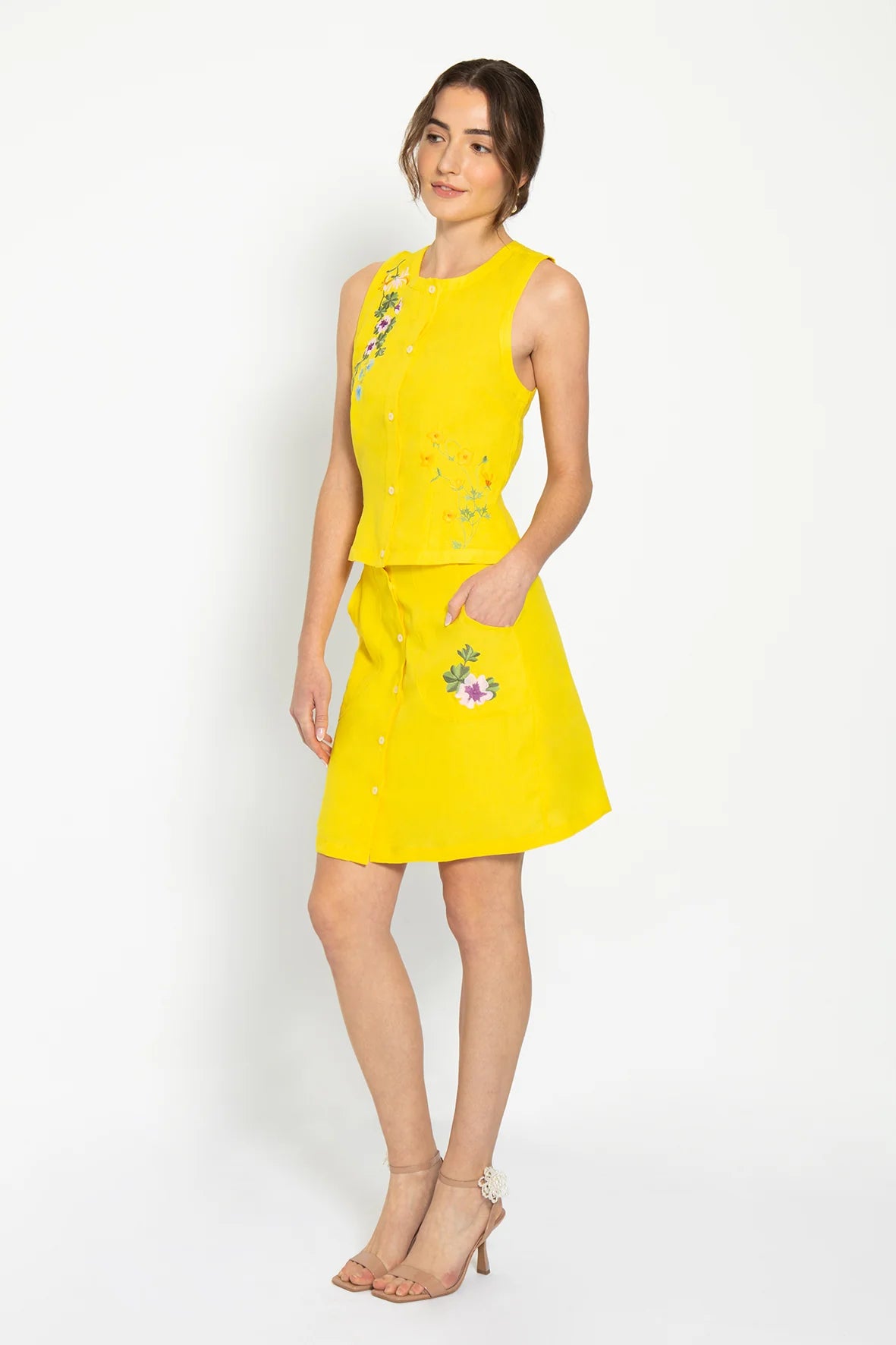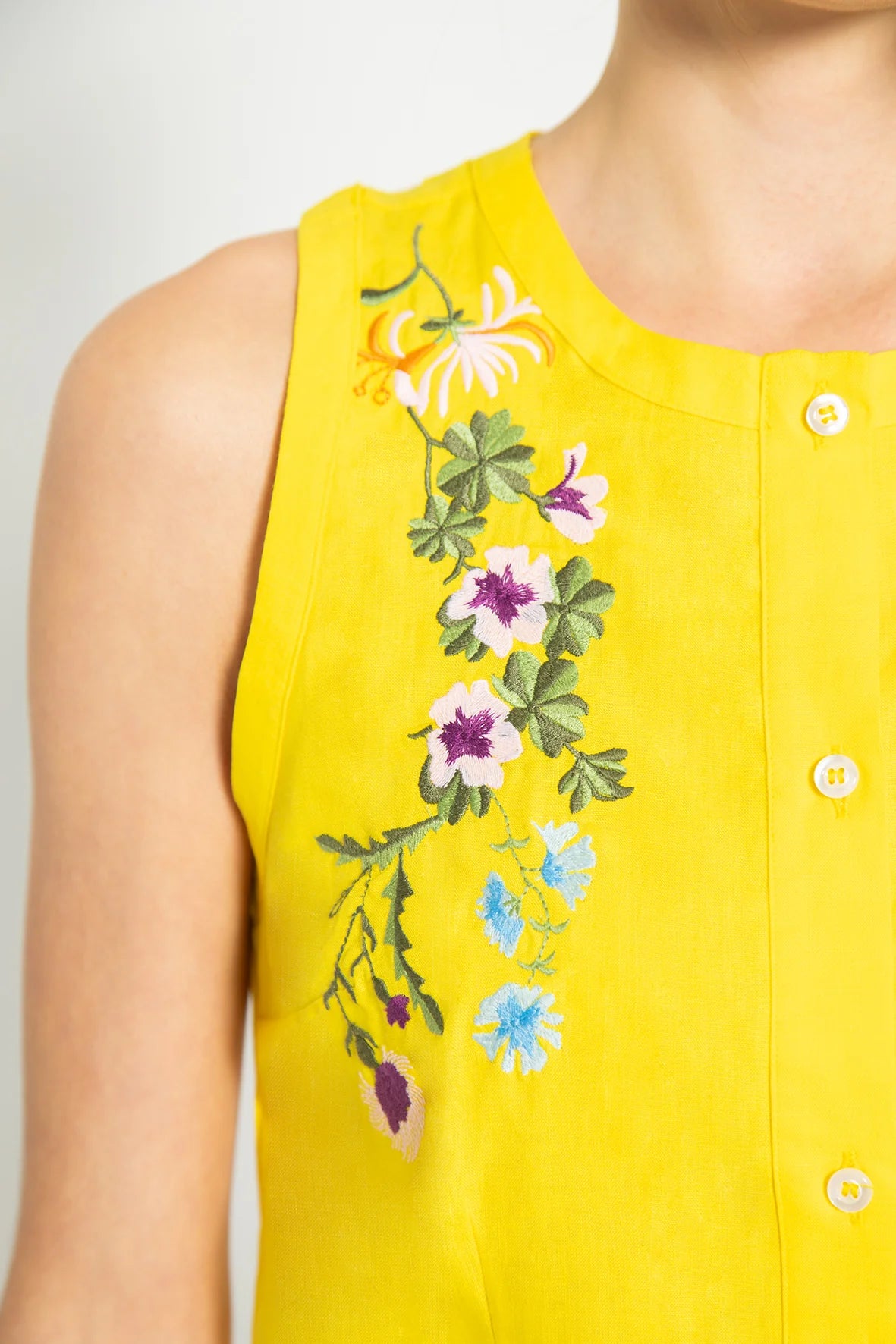 Breezy and effortless, this button-front two-piece set pairs relaxed tailoring with vibrant floral embroidery for a look that's perfect for sunny days and everyday adventures.