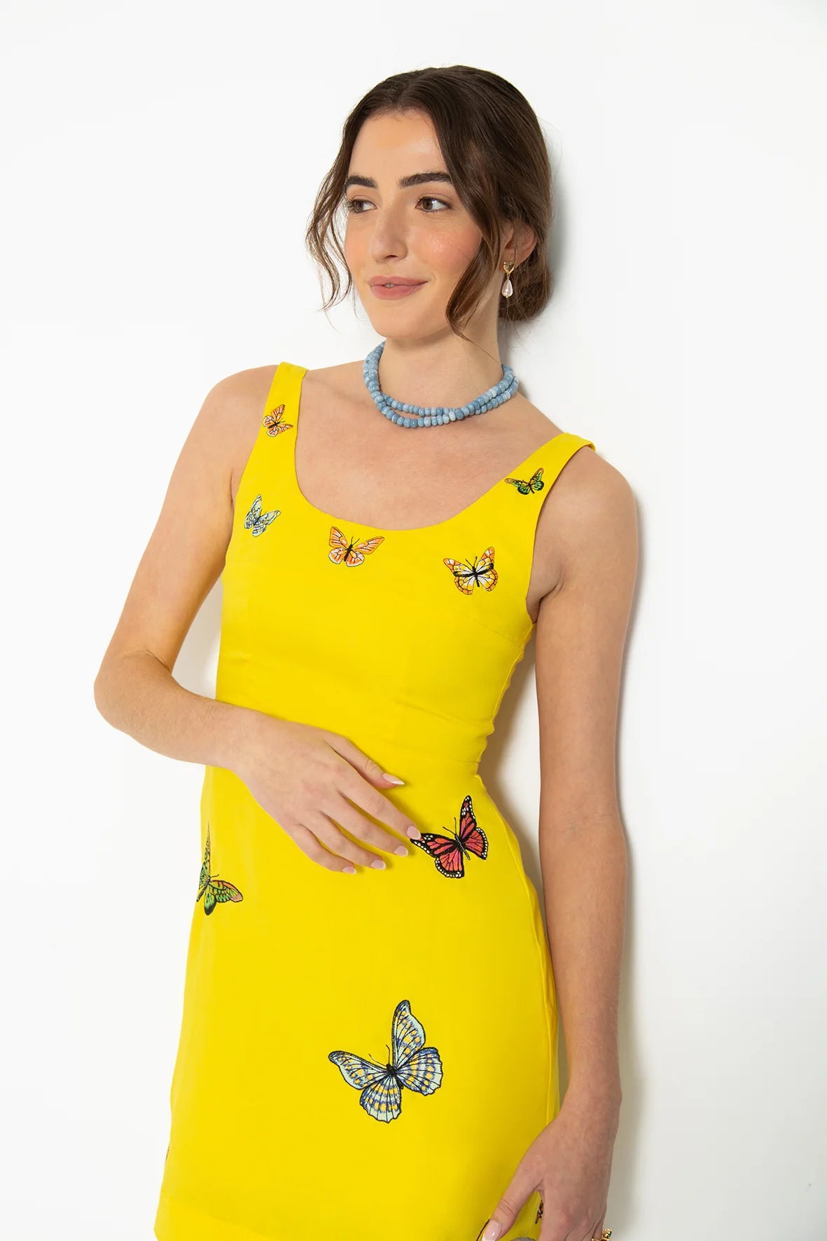 A standout piece that brings joy and movement to every moment. This mini dress has a flattering silhouette and is adorned butterfly embroidery — a whimsical touch that makes it perfect for everything from garden parties to city strolls.