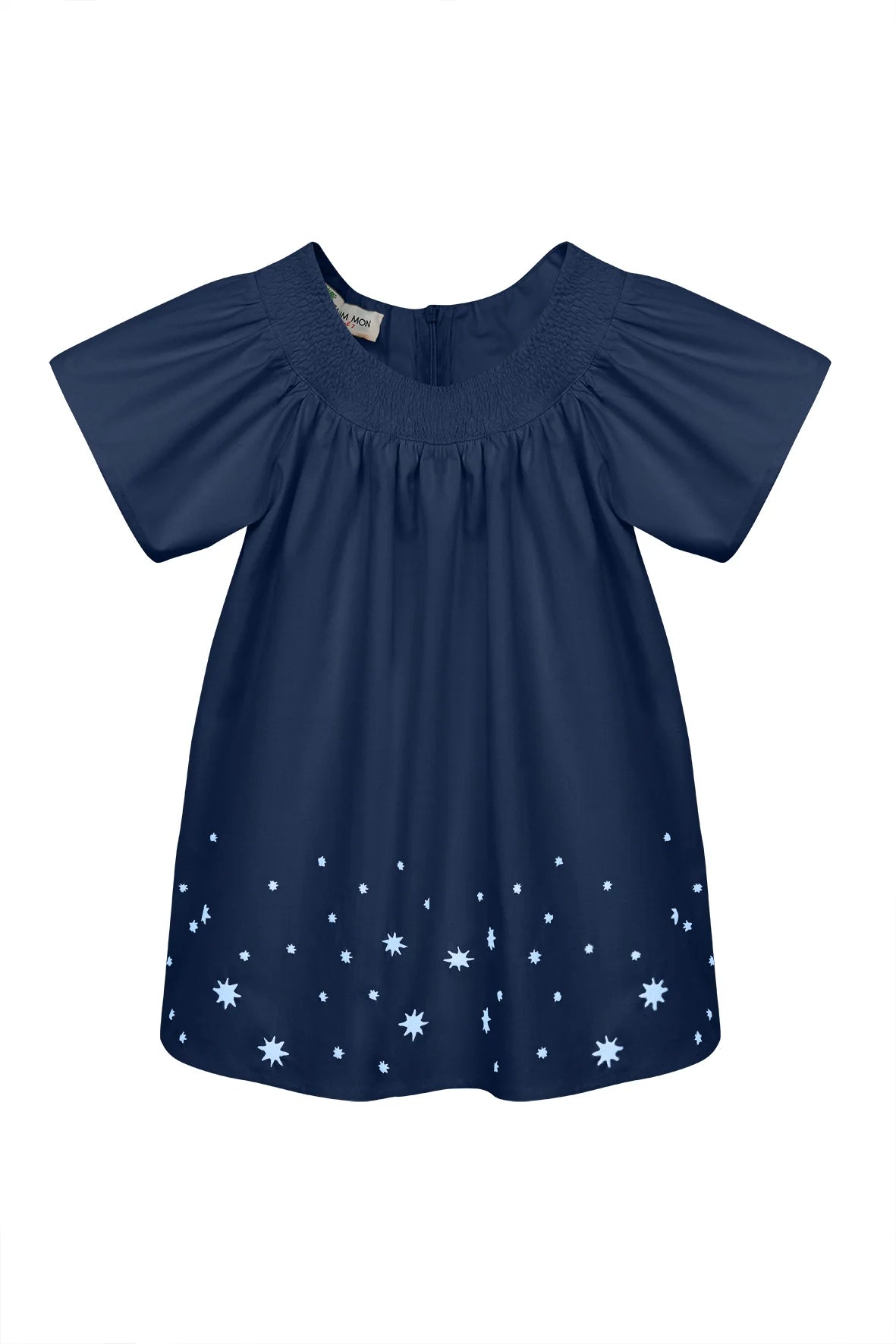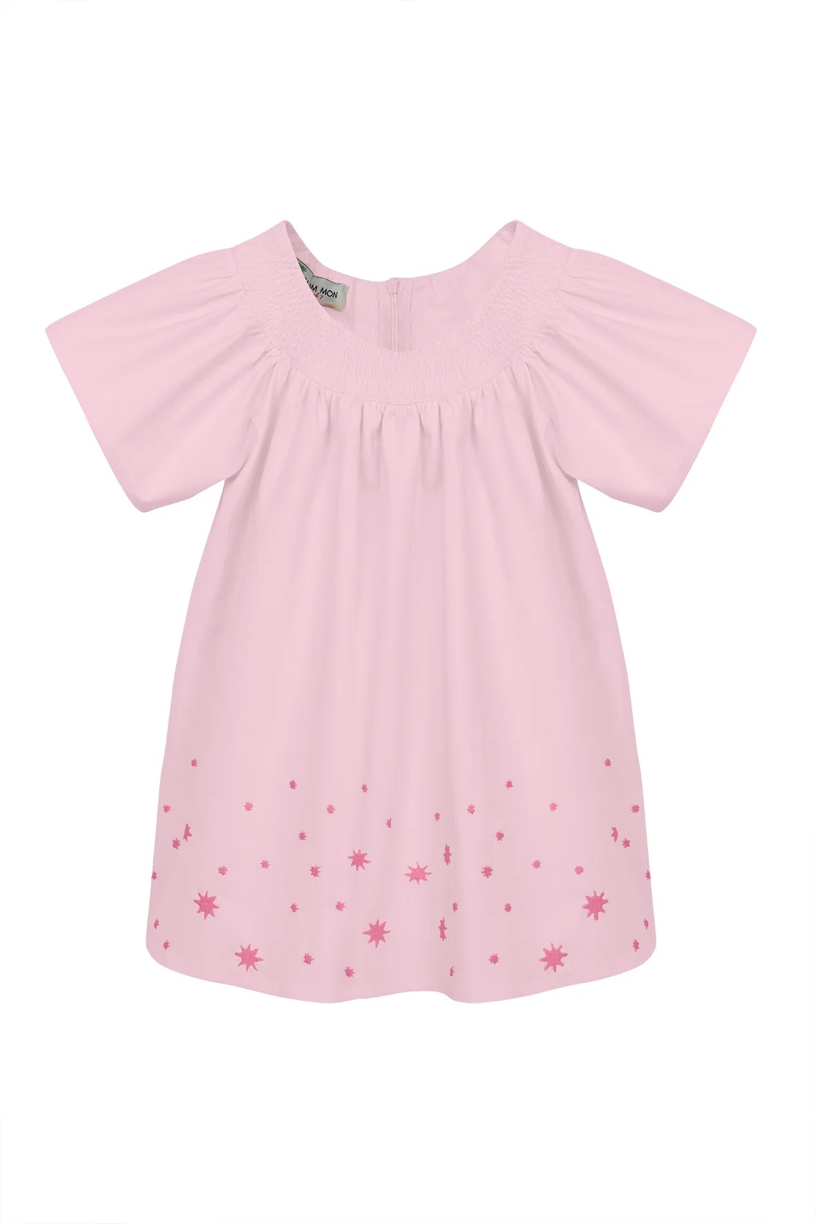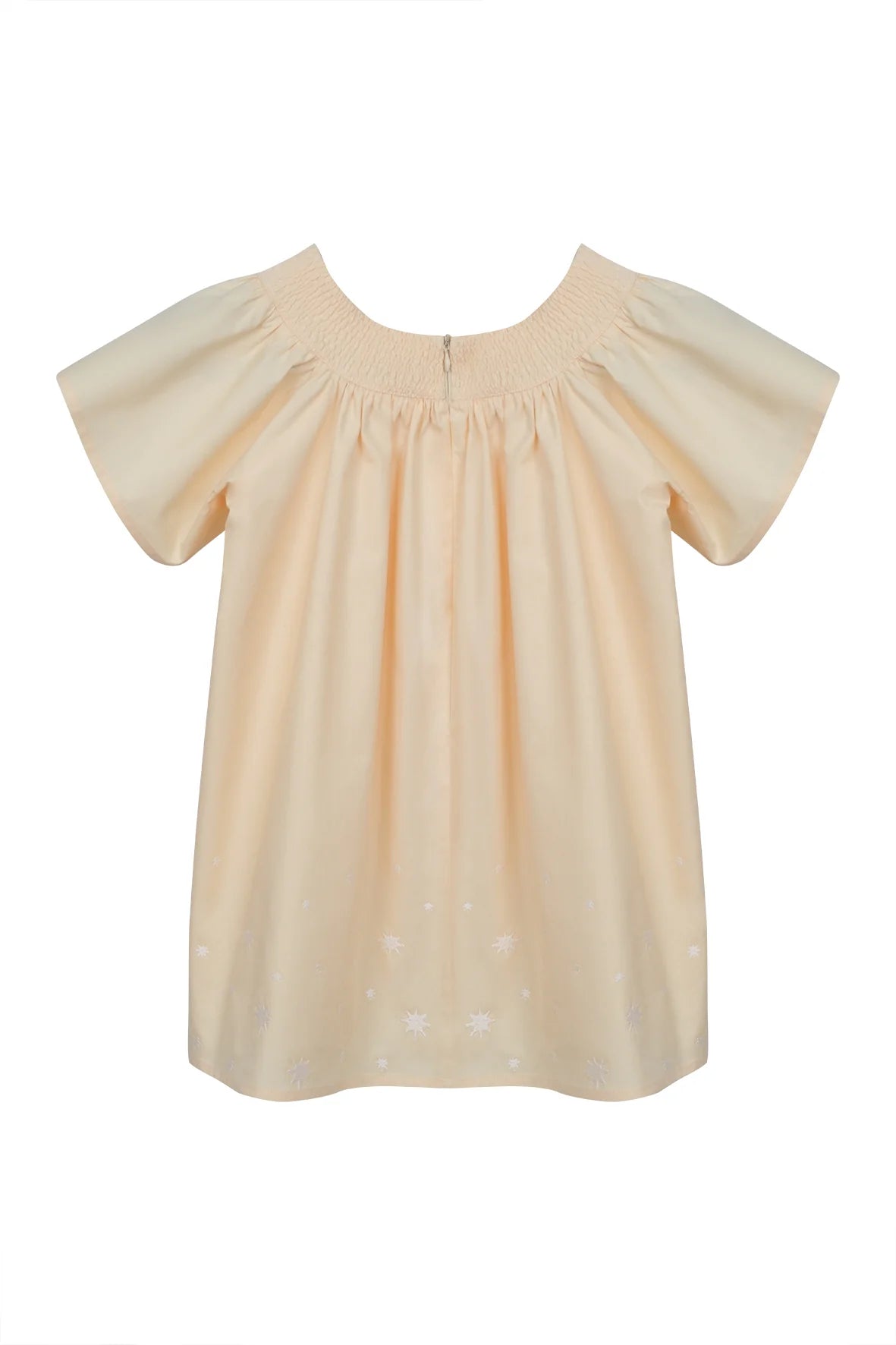 Created in collaboration with Sabrina Chazen and Grace Hamlin, this girls' dress is crafted from 100% cotton with flutter sleeves, a hand-smocked neckline, and starry embroidery along the hemline. Designed to coordinate with the women's Geraldine dress, it’s a charming mini-me look perfect for summer moments.