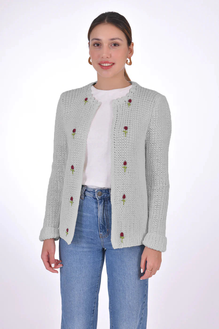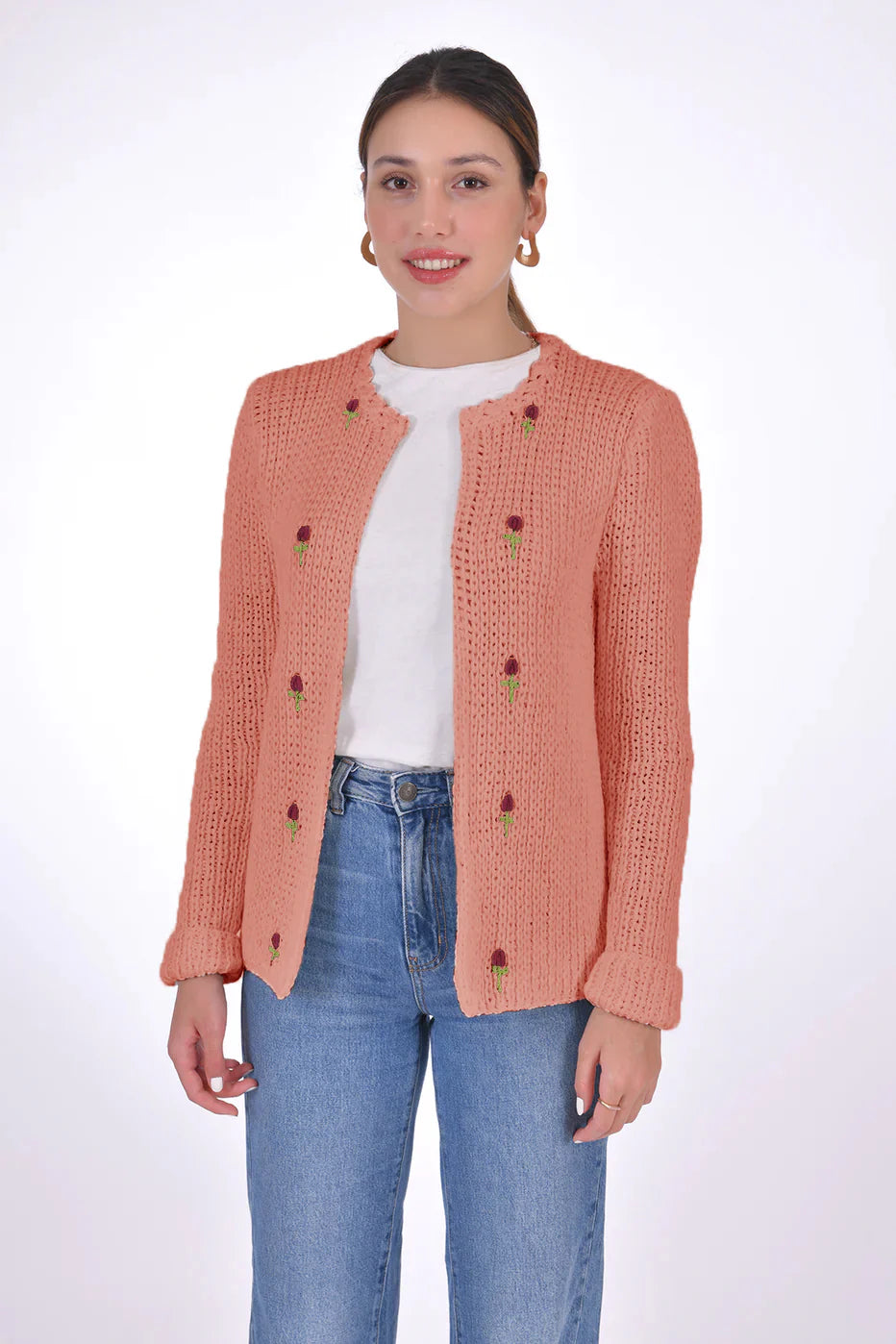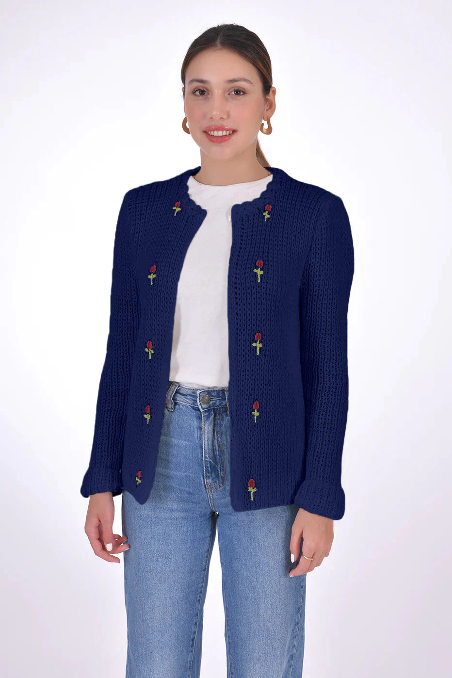 Handcrafted from 100% organic cotton and naturally sourced dyes, this Floral embroidered open cardigan is an ideal addition to any look, thanks to its luxuriously soft cotton feel.