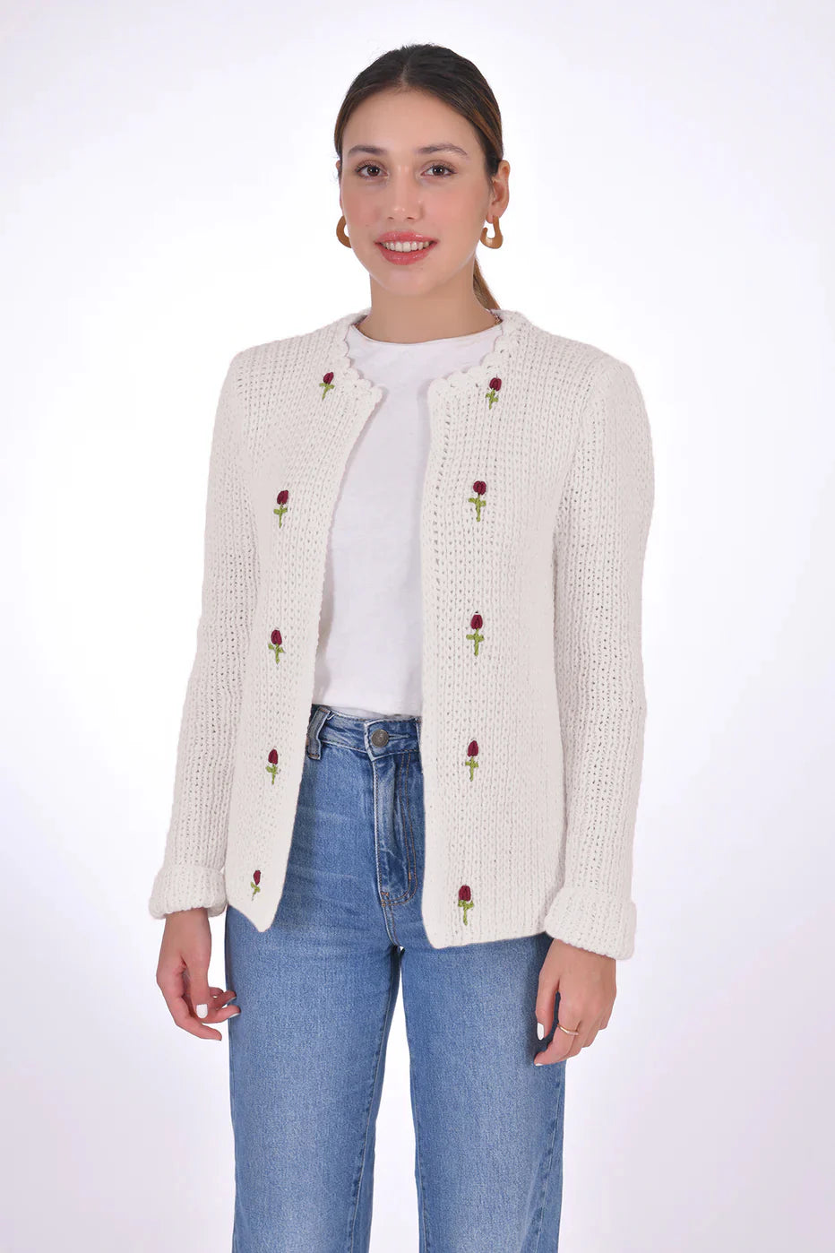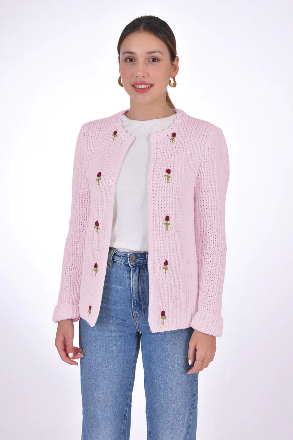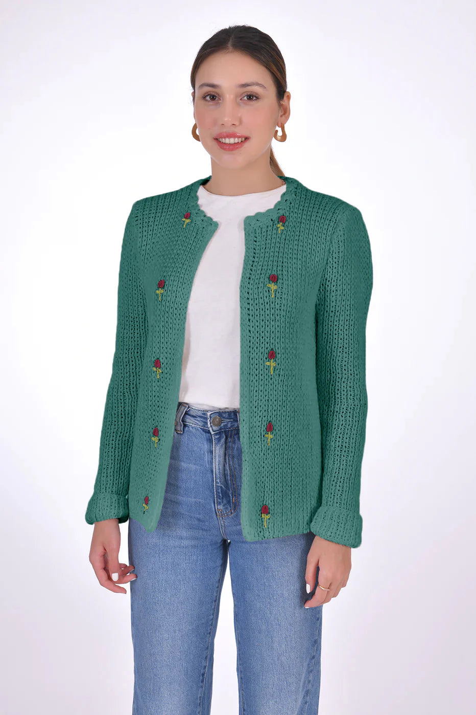 Handcrafted from 100% organic cotton and naturally sourced dyes, this Floral embroidered open cardigan is an ideal addition to any look, thanks to its luxuriously soft cotton feel.
