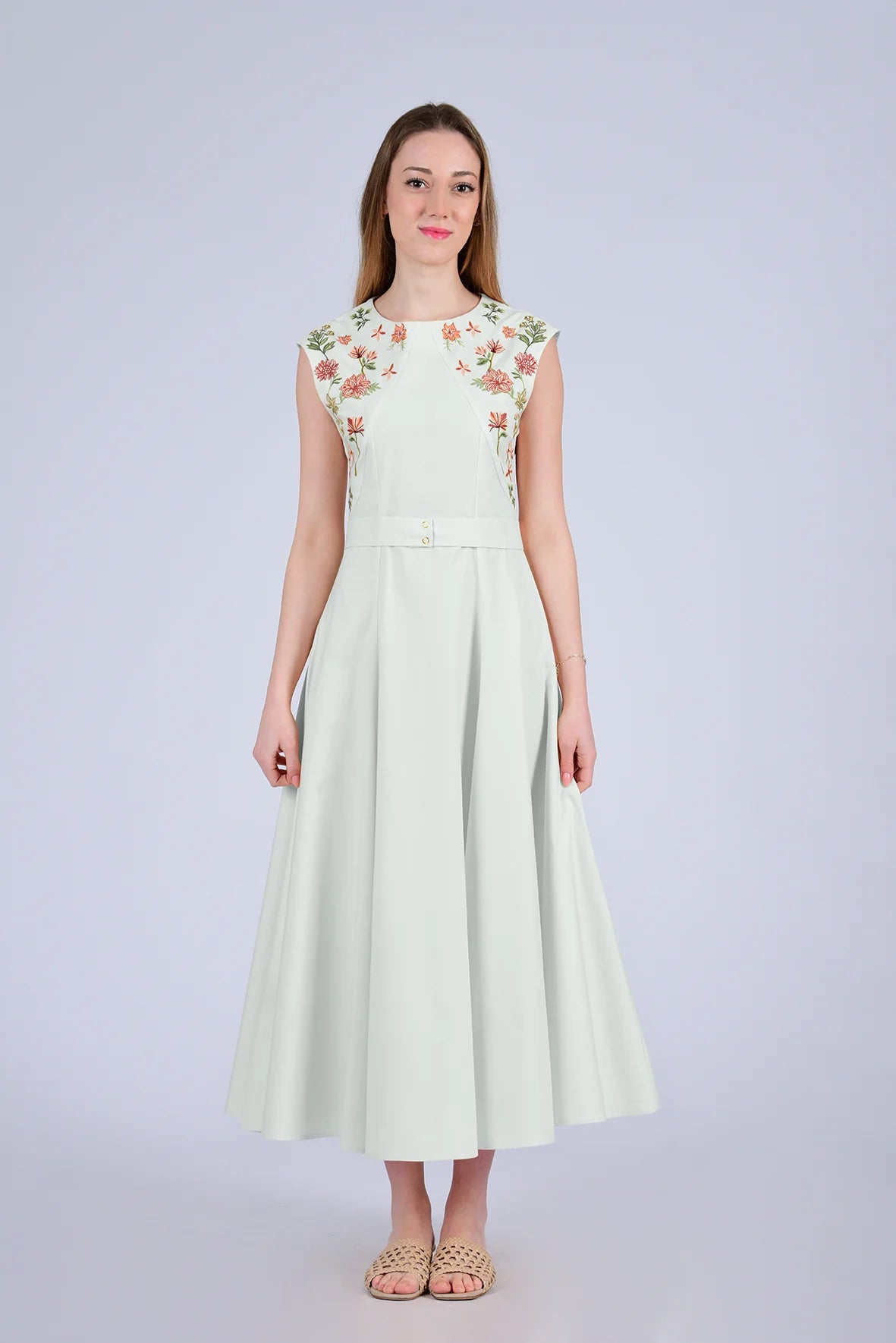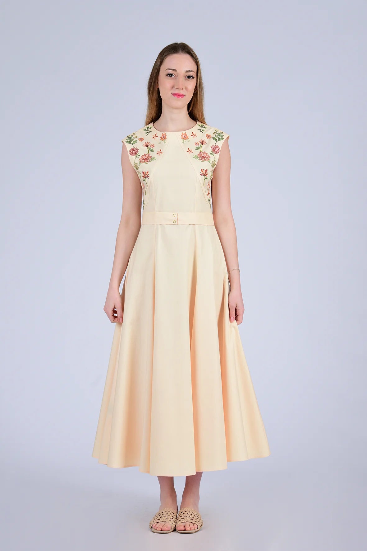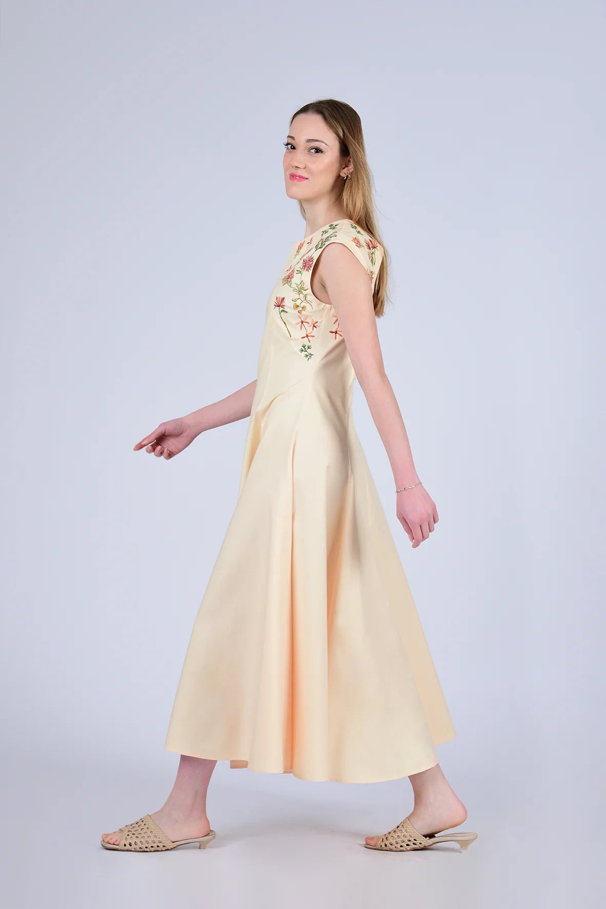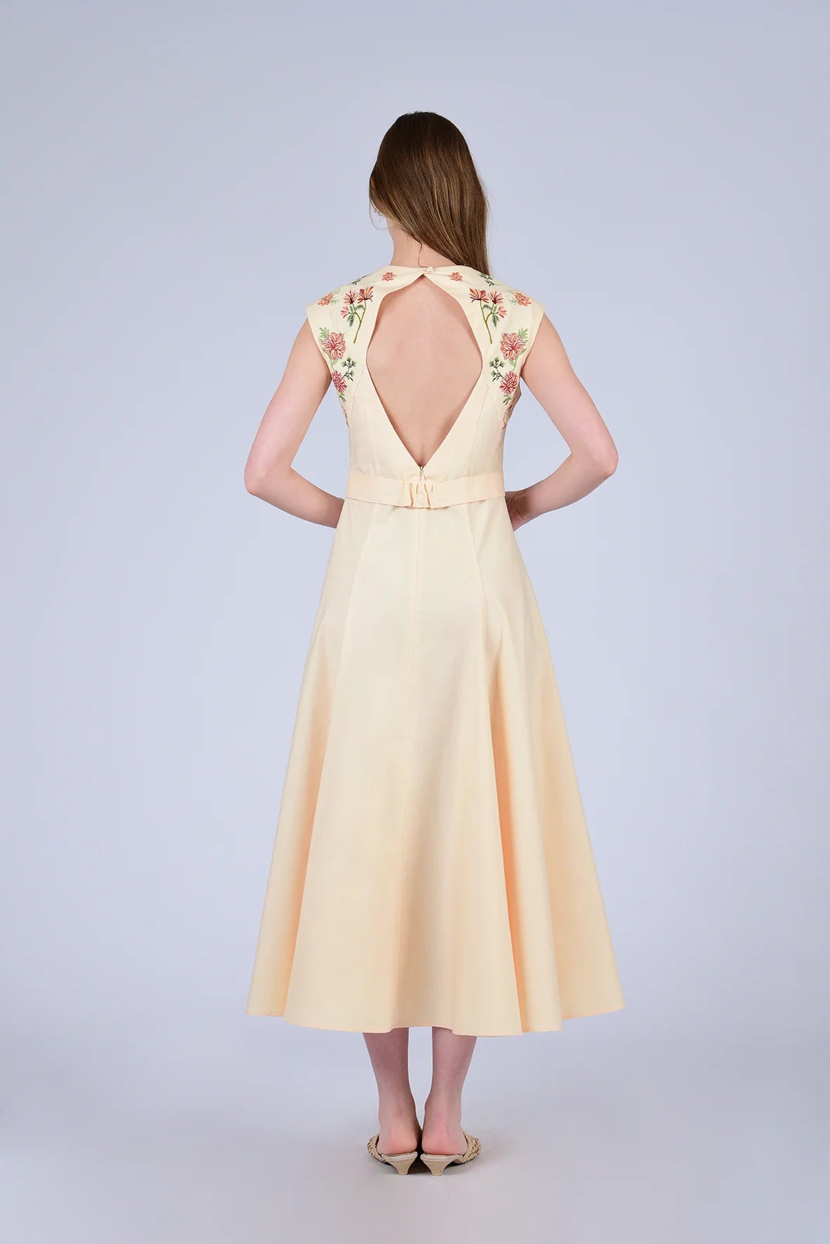 Created in collaboration with Monica Lavin, this effortlessly elegant midi dress blends tailored structure with soft, romantic details—perfect for everything from afternoon gatherings to special celebrations.